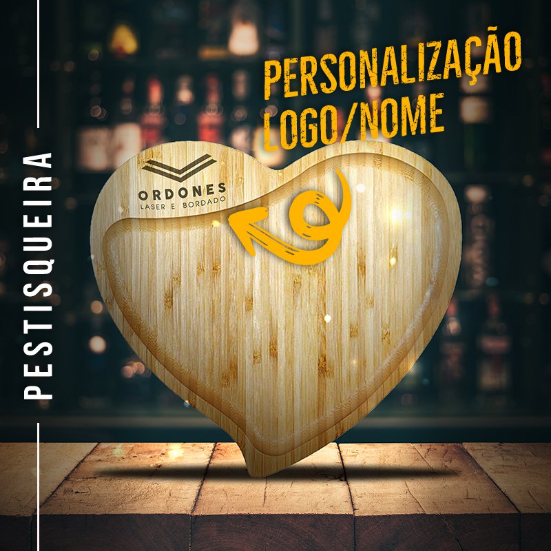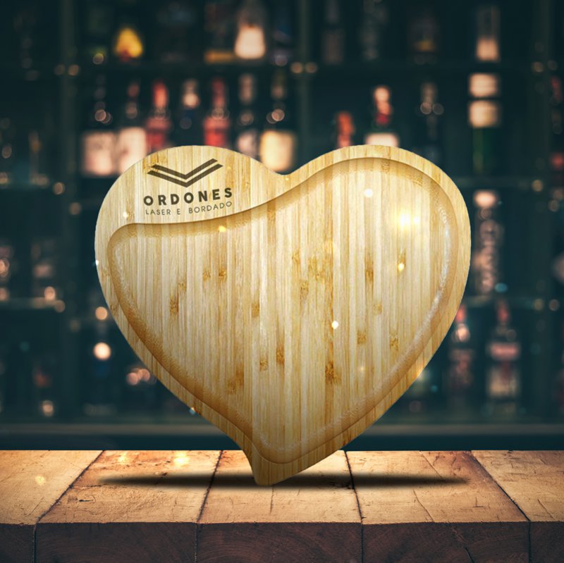 Petisqueira em Bambu com formato de coração. Utilizamos o Bambu, por ser uma matéria prima ecológica, autossustentável e com alta resistência. Além de versátil, o Bambu é 30% mais leve que as madeiras de lei. Sua utilização não agride o meio ambiente, pois, quando ceifado rebrota em pouco tempo.