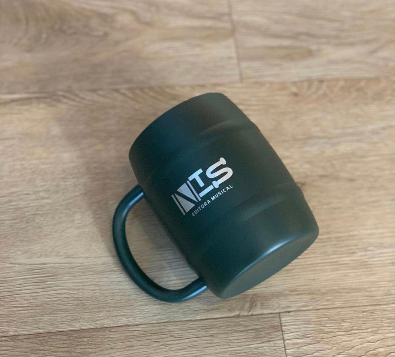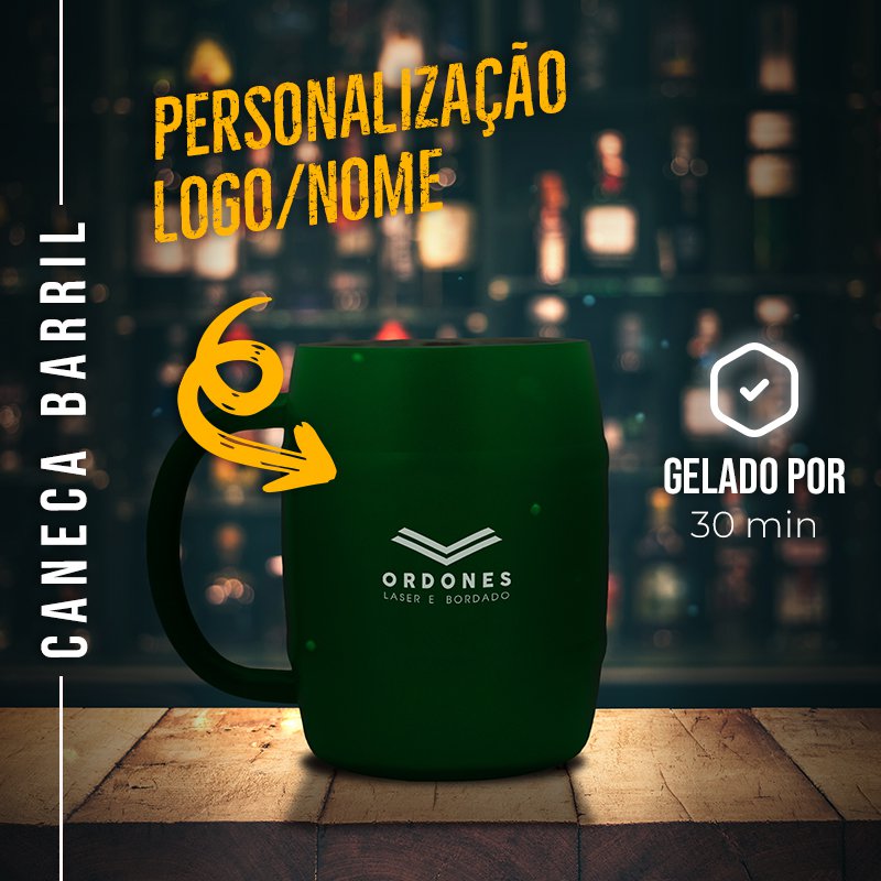 Caneca Barril, tem parede dupla e sua capacidade é de 420ml, feita de aço inox. Mantém a bebida fria ou quente, por meia hora, pois possui um isolamento térmico.
